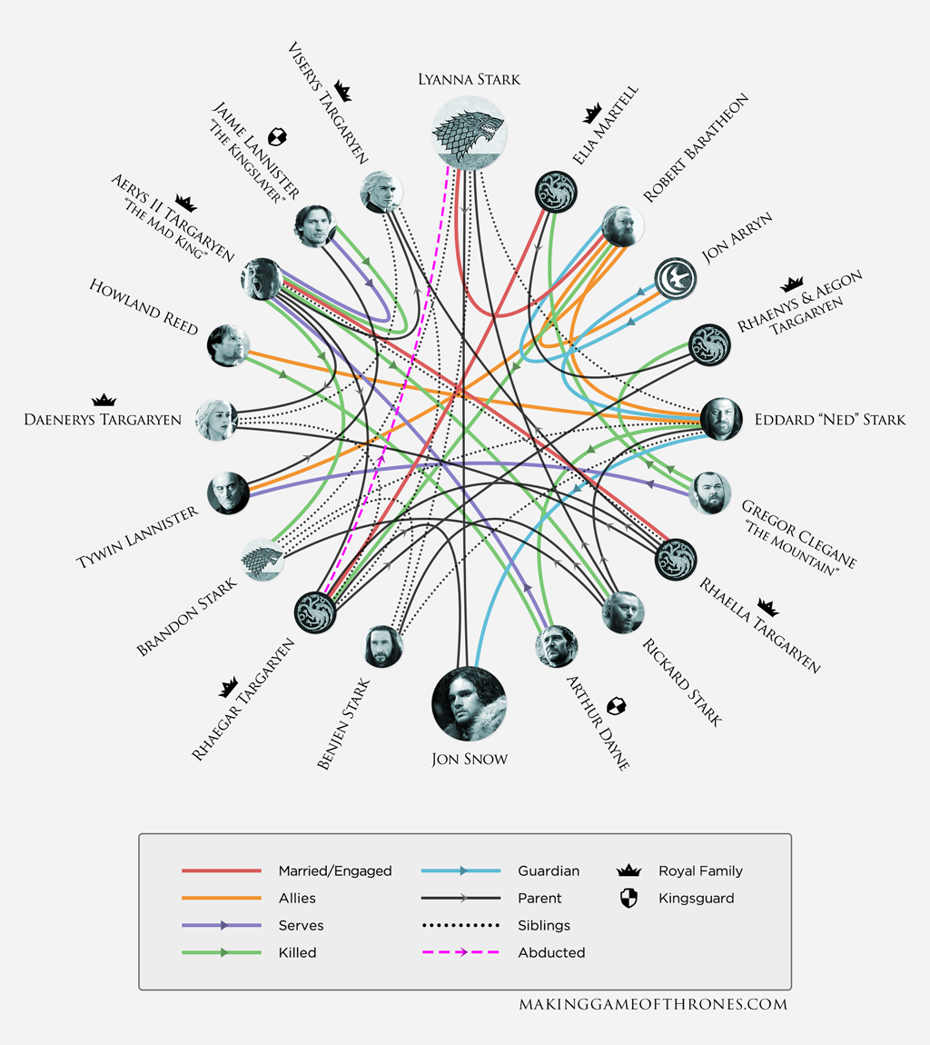Leading into the final season of Game of Thrones, fans understandably became somewhat hazy on how all of the show's myriad characters tied to one another. In order to remedy this, I collaborated with our Editorial team to visualize a character web to help sort out any confusion – and perhaps confirm/deny any rumors around Jon Snow's lineage. Despite having full approval from all arms of the Digital Marketing team, this graphic was presumed by the general public to be the work of one "rogue design intern" at HBO. I was neither rogue nor intern.